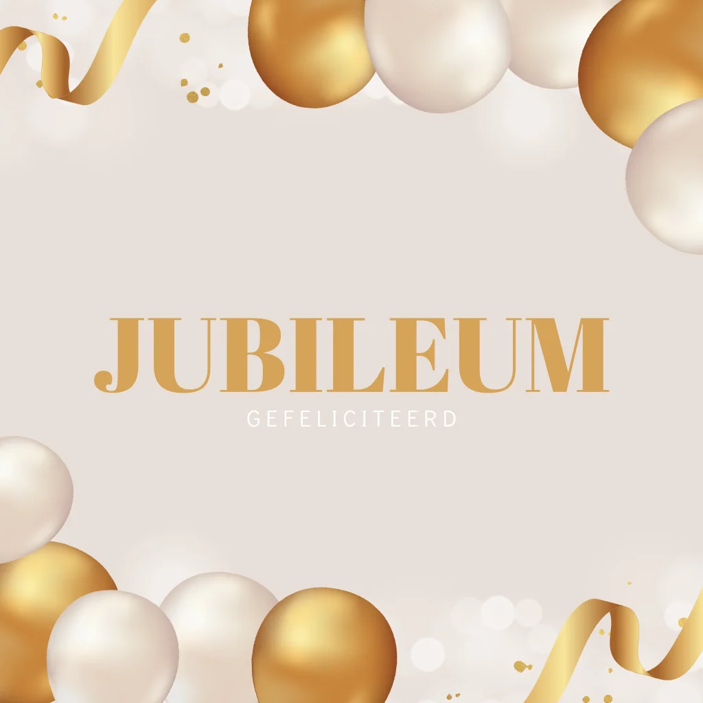 Een feestelijke zakelijke wenskaart voor een zakelijk werkjubileum. Deze kaart heeft een rustige neutrale achtergrondkleur met feestelijke ballonnen. Pas deze jubileum wenskaart naar eigen wens aan in onze online editor. De afbeelding van het logo dient als voorbeeld en wordt niet gedrukt. Deze kun je verwijderen of plaats hier je eigen logo overheen.