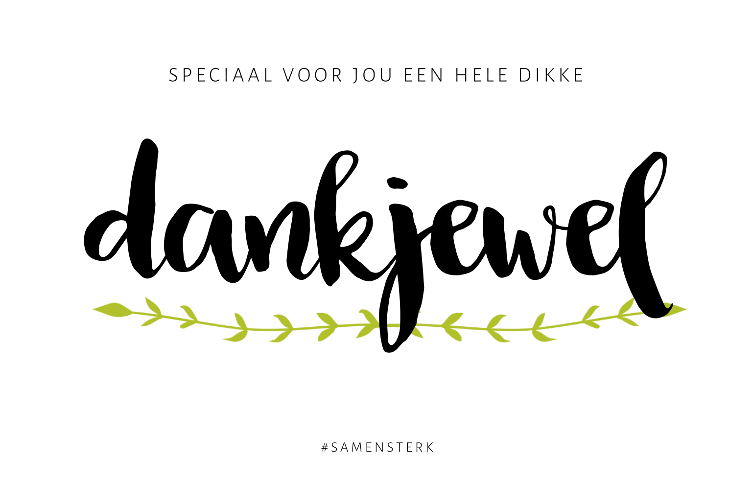 Met deze zakelijke bedankkaart kun jij je trots en waardering uitspreken naar je medewerkers. De kaart is overwegend wit met in sierlijke letters een groot "dankjewel". Teksten en kleuren zijn gemakkelijk aan te passen in de editor of kies uit één van de vele afbeeldingen uit onze galerij om de kaart naar je eigen wens te personaliseren.