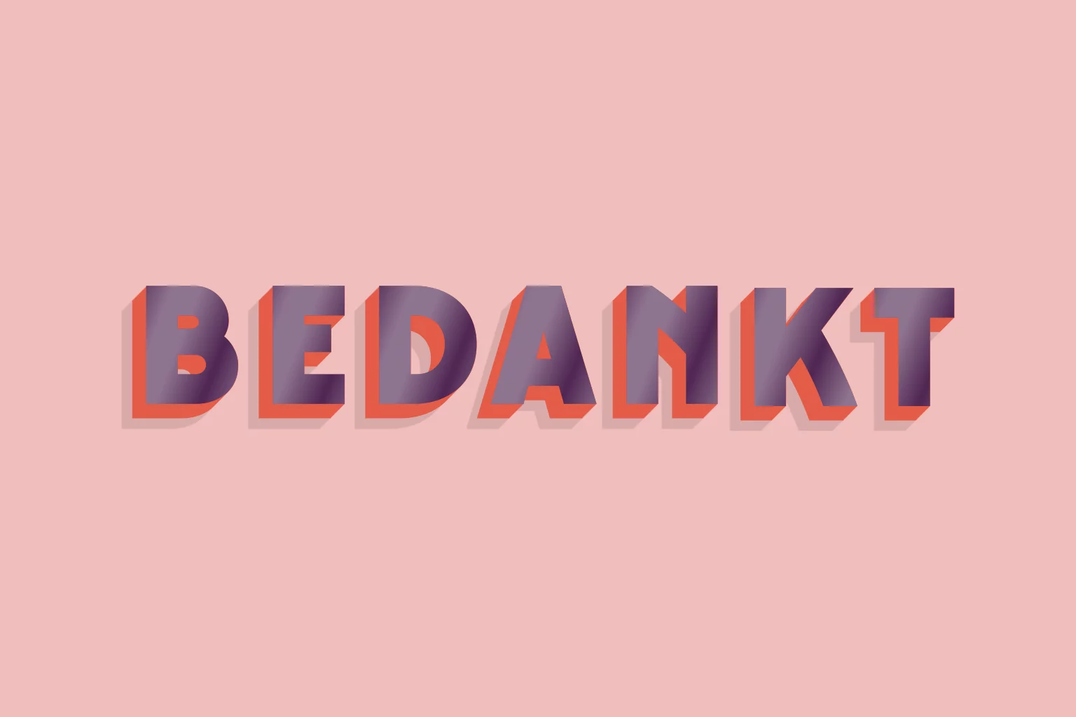 Zakelijke bedankkaart met bedankt in hoogglans 3D letters