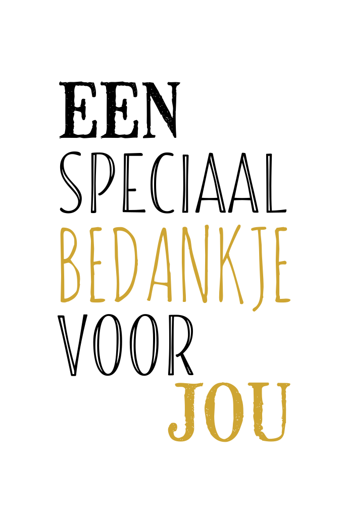 Hippe zakelijke bedankkaart met de tekst "Een speciaal bedankje voor jou" Met deze kaart kun je je medewerkers bedanken en je waardering naar ze uitspreken. Voeg een persoonlijk tekst toe op de achterzijde. De kleuren en lettertypes zijn aan te passen in de editor.