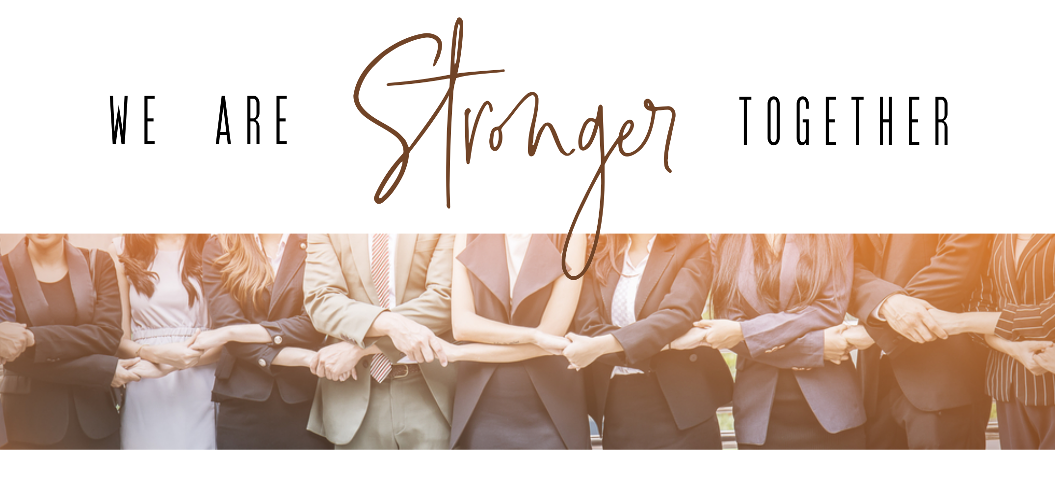 We are stronger together! Zakelijke kaart om jouw medewerkers, klanten of clienten het gevoel van samen sterk mee te geven. Op de gebruikte foto staan mensen zij aan zij en hand in hand, welke het het gevoel van verbinding weergeeft. En eigen foto is ook mogelijk en achterop is er ruimte om een logo toe te voegen. Teksten en kleuren zijn aan te passen in de editor.