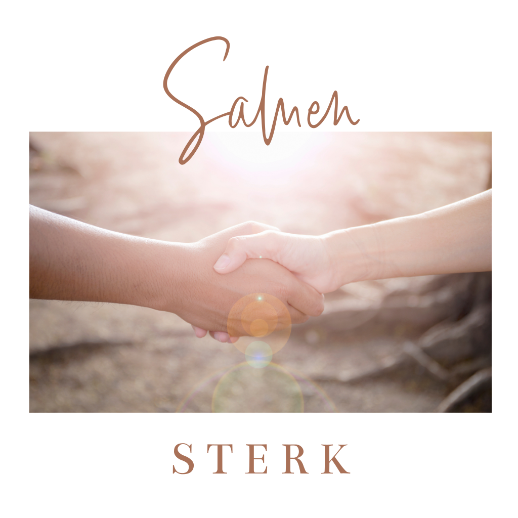 Zakelijke kaart om jouw medewerkers, klanten of clienten het gevoel van samen sterk mee te geven. Op de gebruikte foto staat een handdruk die staat voor het gevoel van verbinding. Teksten en kleuren zijn aan te passen in de editor.
