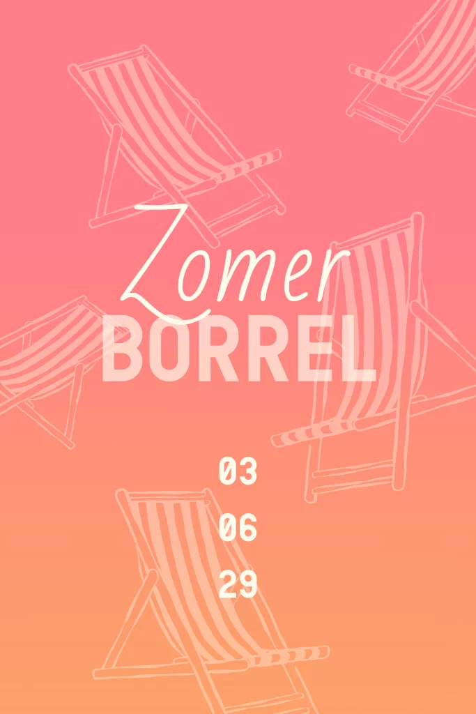 Nodig al je personeel uit voor een zomerborrel om samen te proosten en de vakantie in te luiden. Dit is een echte kleurrijke zomerse uitnodiging met strandstoelen. Zo komen je werknemers al helemaal in de zomersferen. Hulp nodig bij het aanpassen van deze kaart? We helpen je er graag bij.