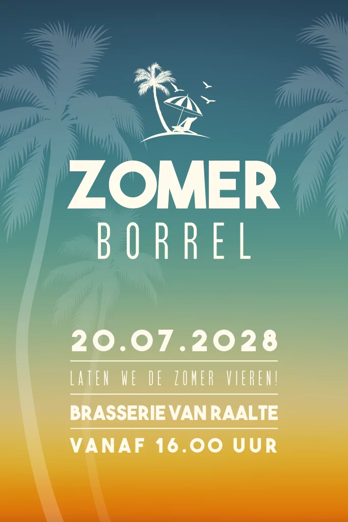 Zomerborrel uitnodiging zakelijk met palmbomen