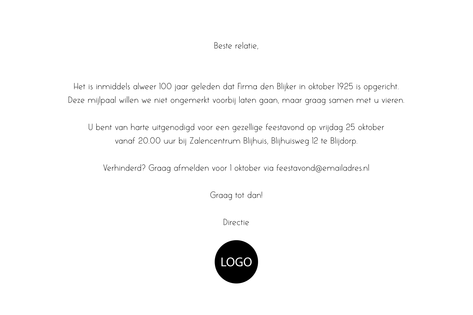 Luxe uitnodiging zakelijk jubileum 100 jaar met zwartfolie
