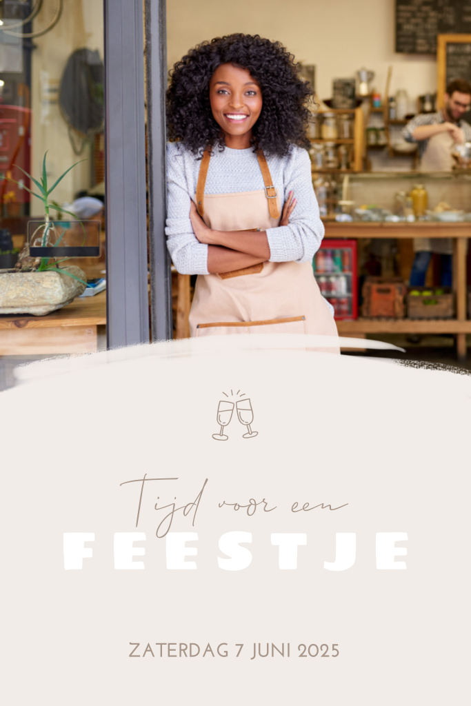 Zakelijke uitnodigingskaart voor diverse bedrijven. Wil jij je medewerkers of relaties uitnodigen voor een bedrijfsopening, zakelijk jubileum of bedrijfsfeest? Zeg het met deze mooie trendy kaart! Op deze kaart is het mogelijk om op de buitenzijde een foto te plaatsen en op de binnenzijde een eigen bedrijfslogo toe te voegen.