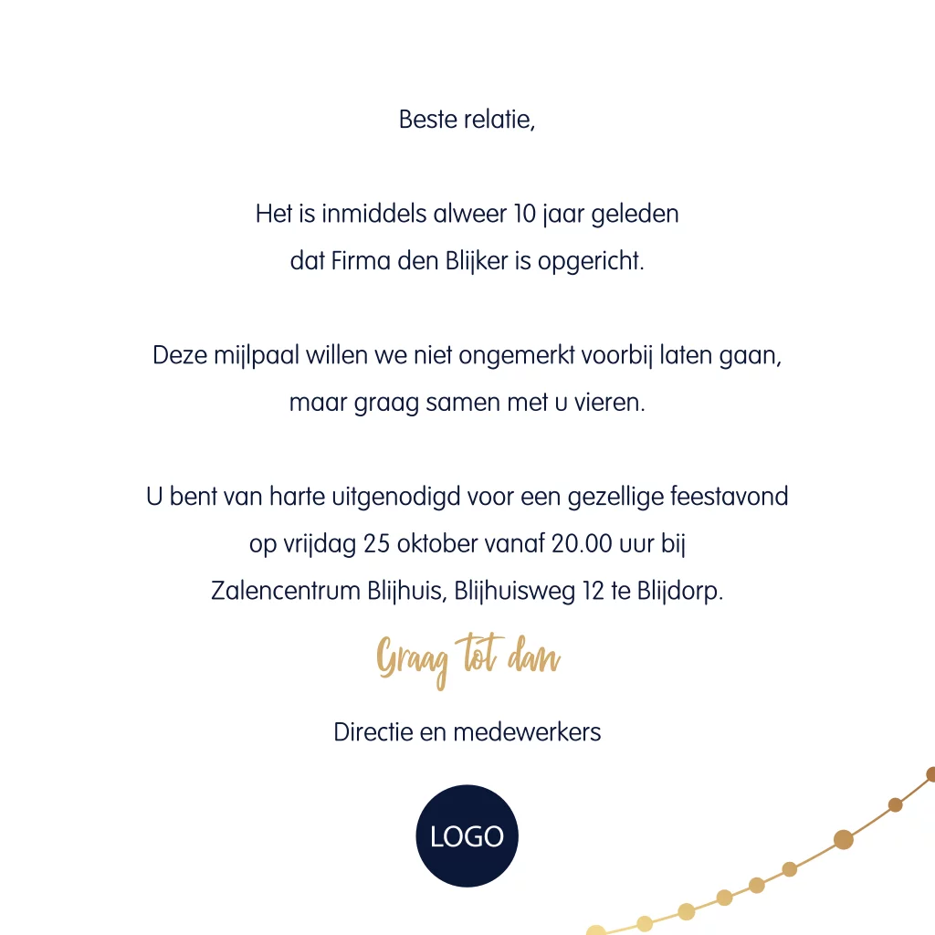 Zakelijke uitnodiging jubileum 10 jaar met slingers en foto