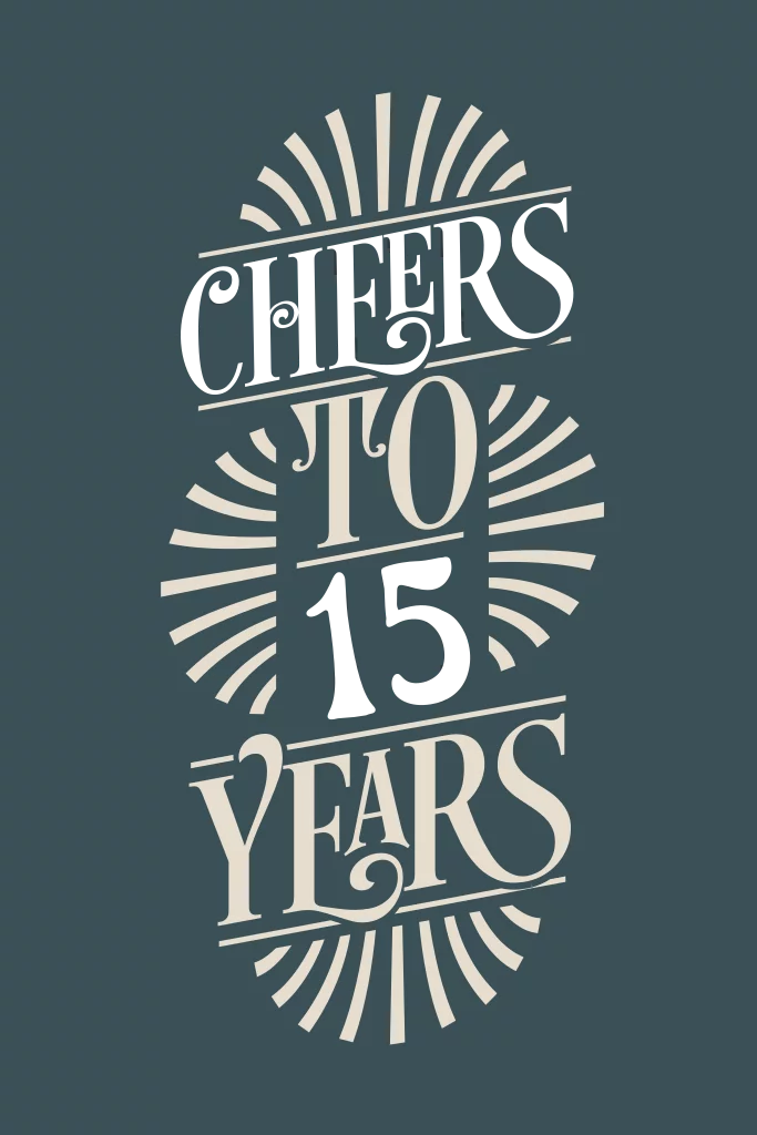 Vieren jullie dit jaar een 15-jarig zakelijk jubileum? Dat moet gevierd worden! Deze feestelijke en luxe kaart is bedrukt met goudfolie, waardoor het er extra uit springt. De achtergrond is donkerblauwe denim en de tekst is beige met goud. Deze kaart heeft een vintage en retro uitstraling. De ronde hoeken maken het helemaal af!