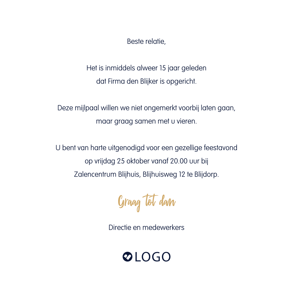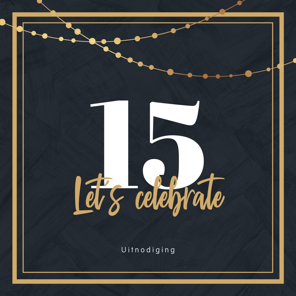 Zakelijk jubileum 15 jaar let's celebrate met slingers en logo