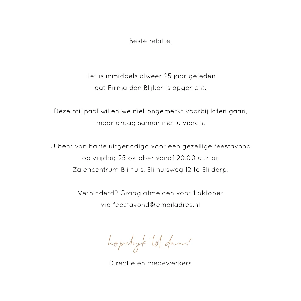 Stijlvolle zakelijke uitnodiging 25-jarig jubileum met champagne