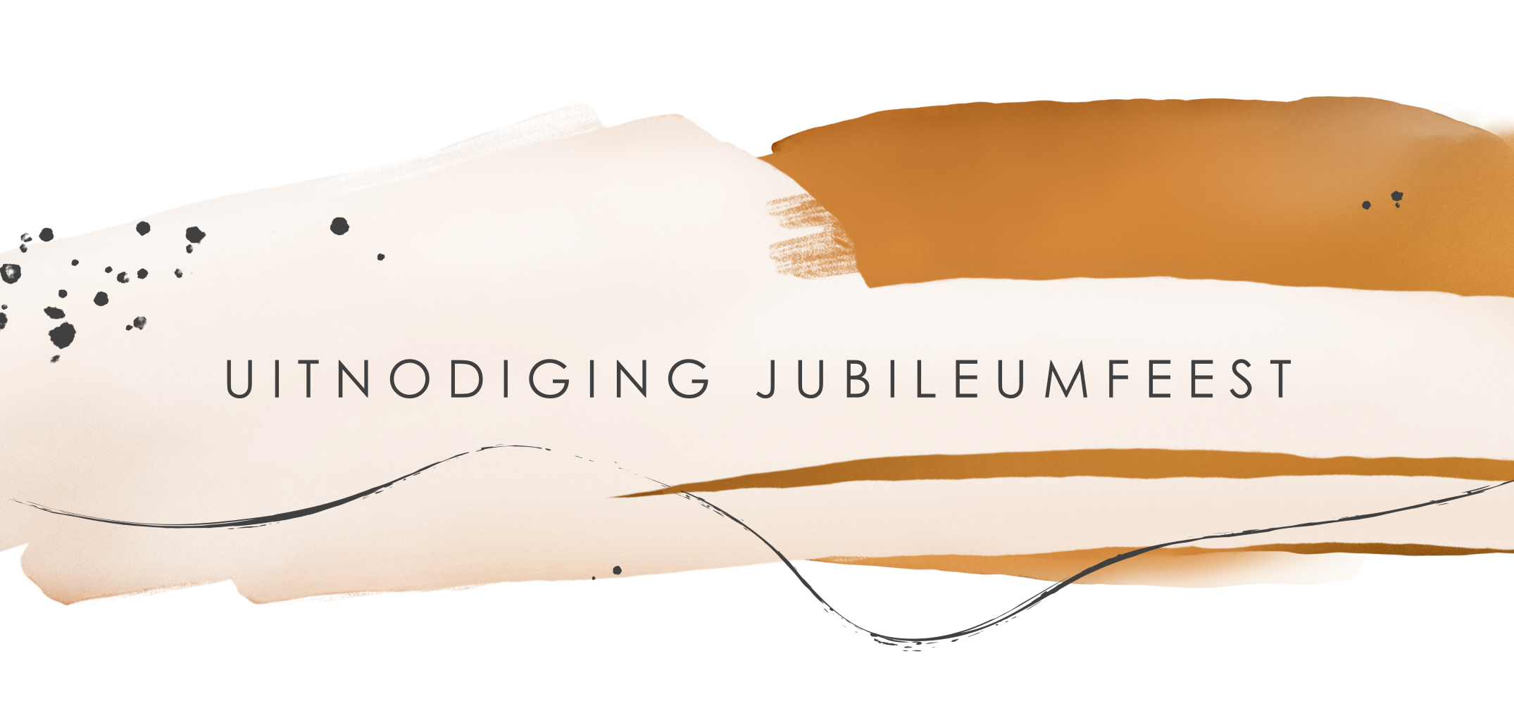 Nodig je medewerkers en zakelijke relaties uit voor jullie jubileumfeest. Op deze kaart een witte achtergrond met aquarel vegen in beige en oranje. Deze zakelijke kaart is geschikt voor verschillende bedrijven uit diverse sectoren en branches zoals bedrijven in de zakelijke dienstverlening.