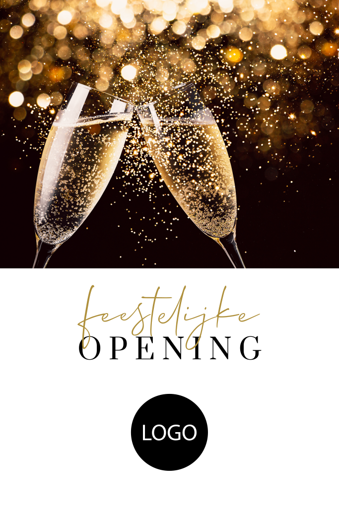Zakelijke opening uitnodiging met foto champagne en eigen logo