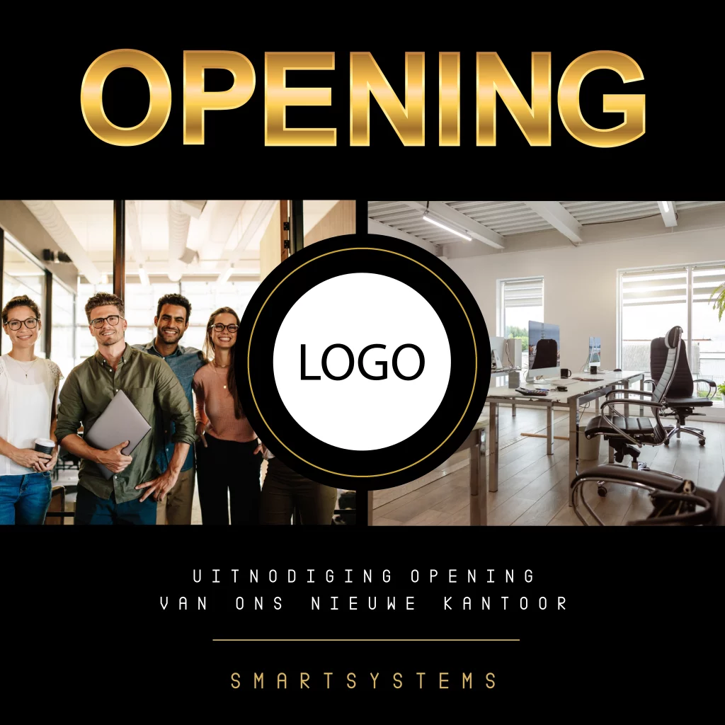 Zakelijke uitnodiging opening met zwart, goud en eigen foto