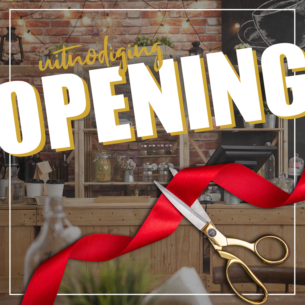 Zakelijke opening uitnodiging met eigen foto en lint