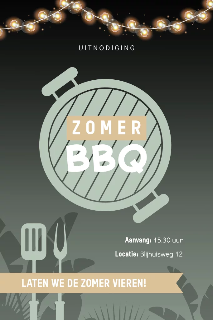 Zakelijke zomer bbq uitnodiging met lampjes en barbecue