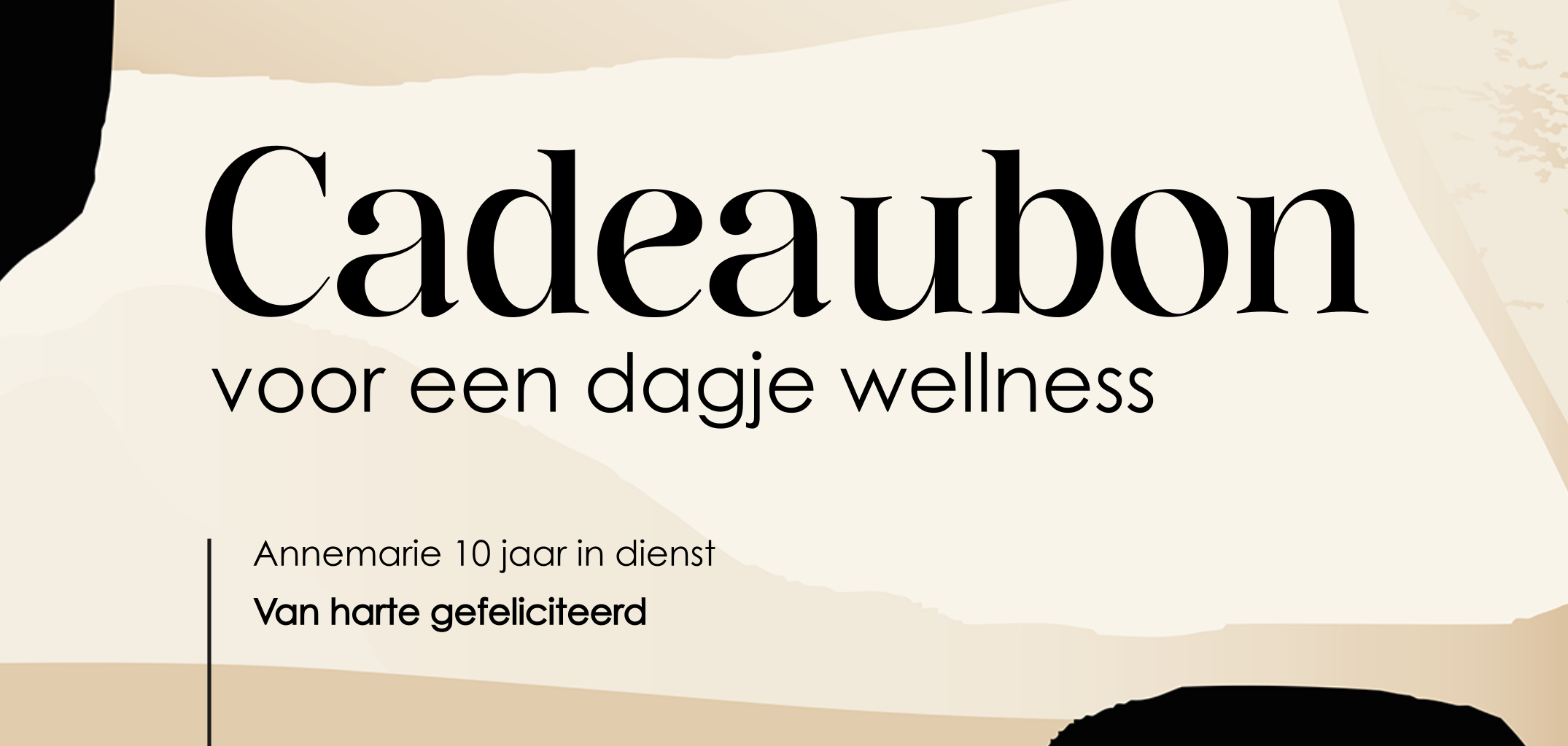 Is er een medewerker 10 jaar in dienst en willen jullie als bedrijf diegene een dagje wellness geven? Dan is dit de zakelijke kaart die je zoekt! Deze zakelijke uitnodiging in ticketvorm is een unieke waardebon, afgewerkt met abstracte vormen in rustige kleuren.